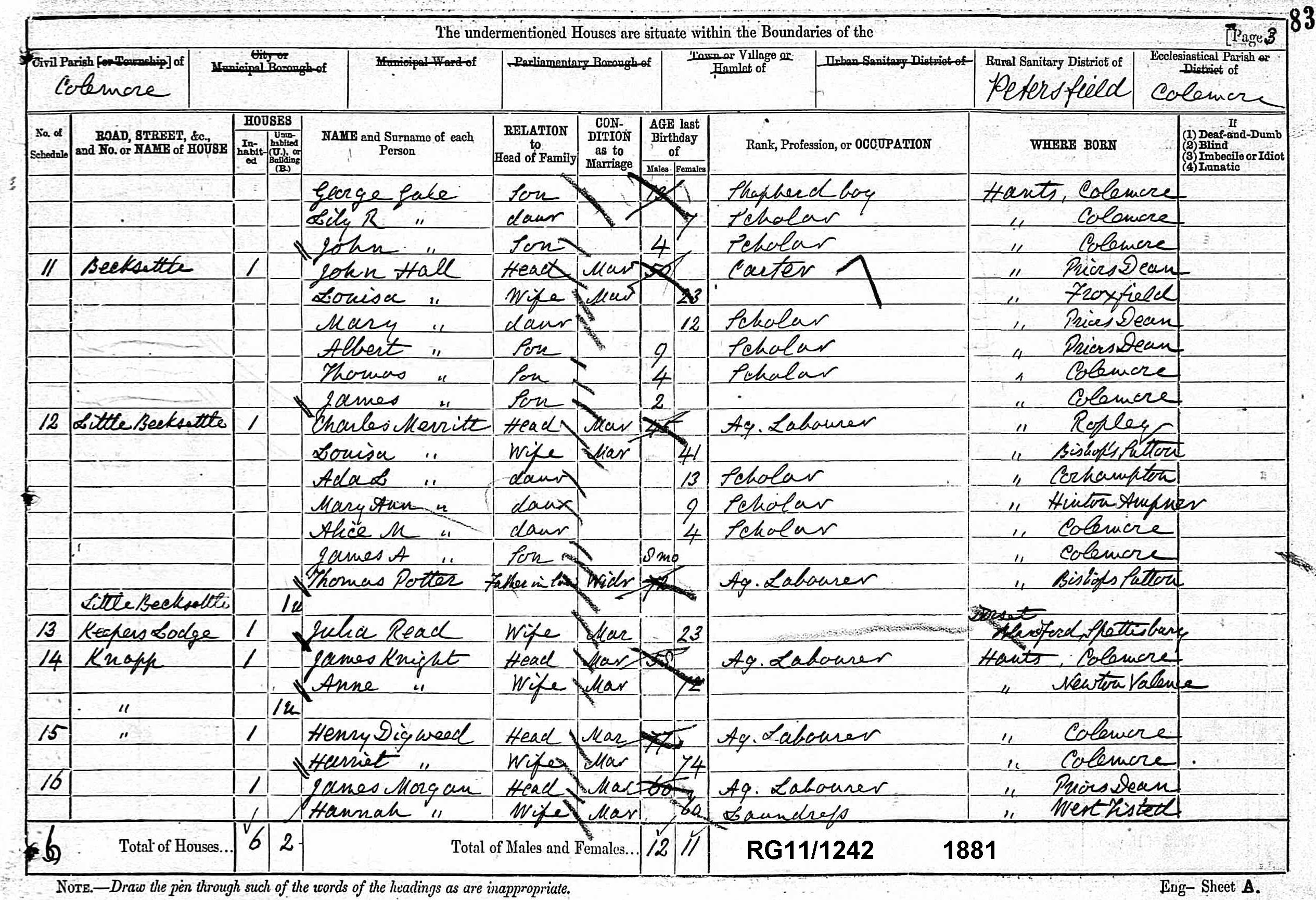 Colemore 1881 Census Returns - Taken on the night of Sunday 3rd April 1881