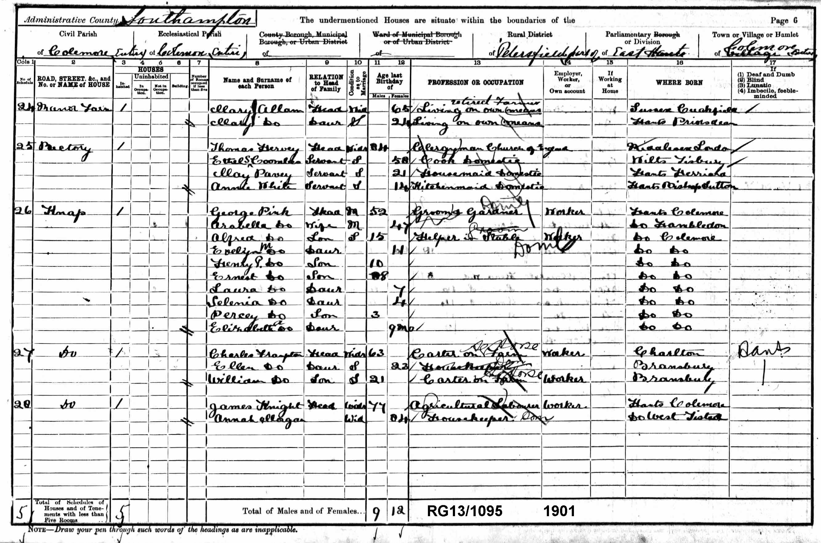 Colemore 1901 Census Returns - Taken on the night of Sunday 31st March 1901
