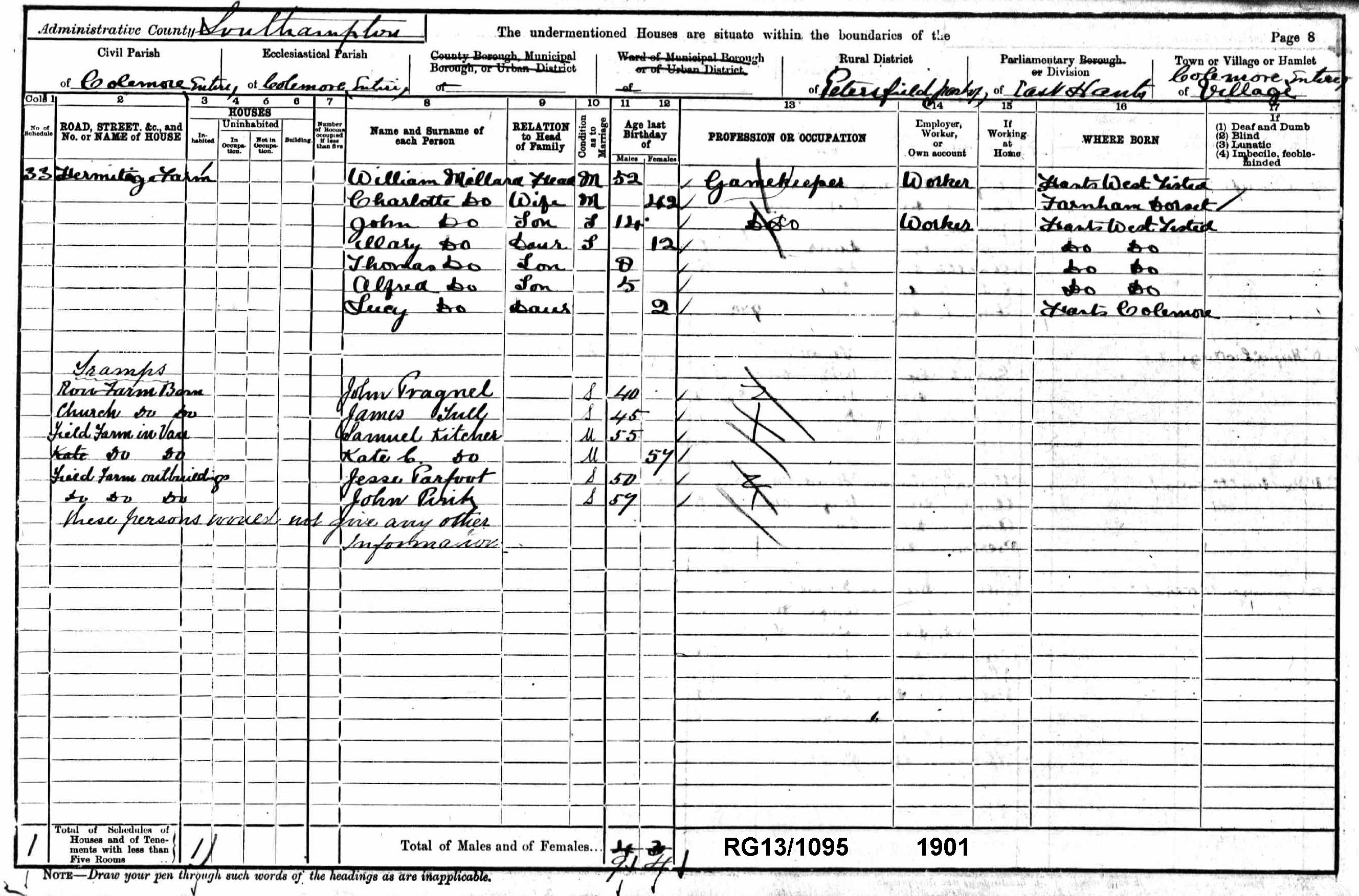 Colemore 1901 Census Returns - Taken on the night of Sunday 31st March 1901